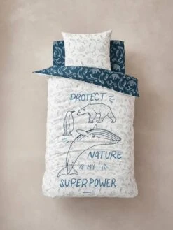 - Imprimé animaux verso housse de couette, taie d’oreiller et drap housse