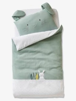 Parure Housse De Couette + Taie D’oreiller Enfant SUR LES RAILS Vert – Vertbaudet